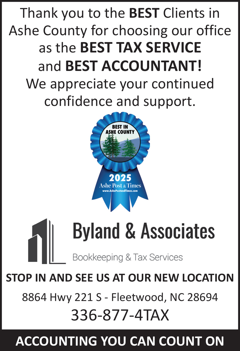 Jan 28, 2026. Byland & Associates Accounting Ads from Ashe Post & Times