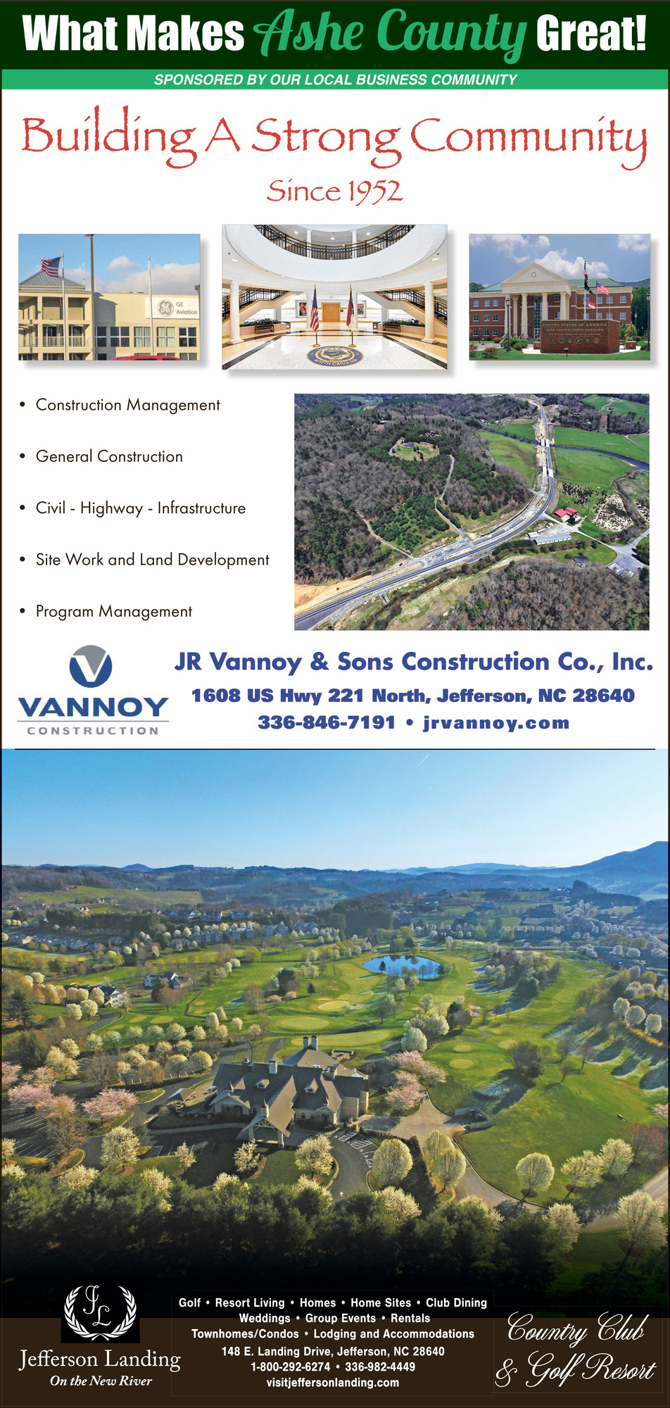 Ads for Vannoy Construction & Jefferson Landing in Jefferson, NC