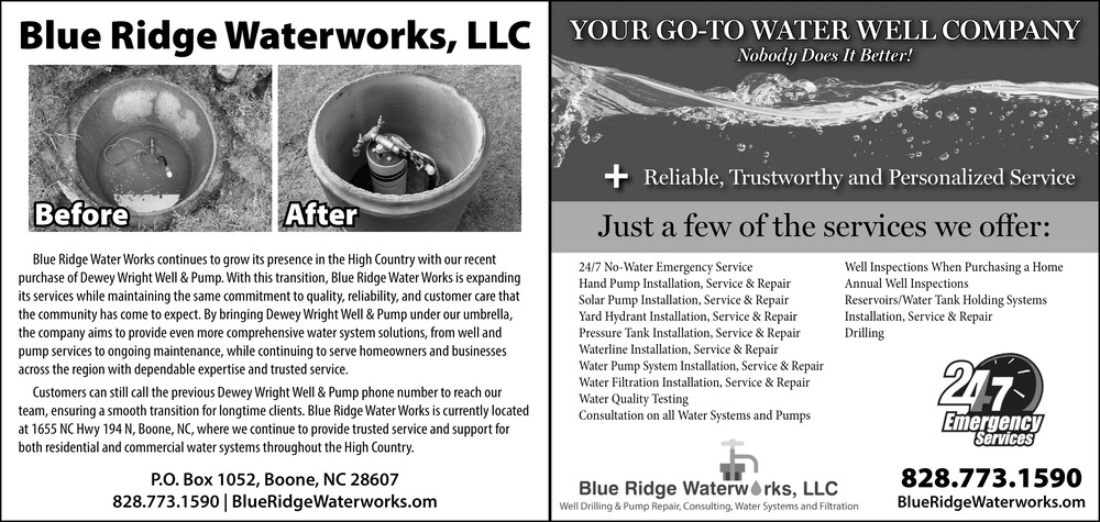 Mar 25, 2026. Blue Ridge Waterworks, LLC Construction Ads from Mountain Times
